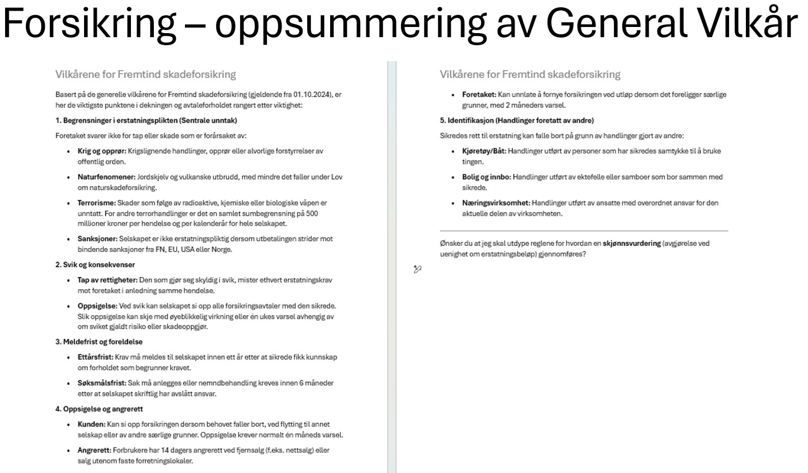 Forsikringsvilkår – dokumentoppsummering