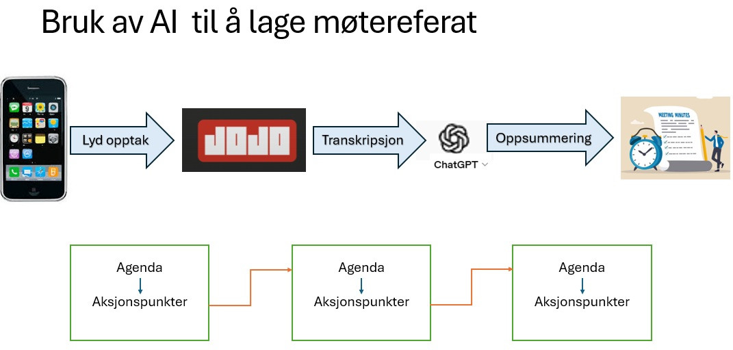 Tillegg: Dette er en stor tidsbesparelse for sekretærer og møteledere. Verktøy som Otter.ai, Microsoft Copilot (integrert i Teams) og Nettskjema Diktafon (Universitetet i Oslo) støtter norsk transkripsjon.